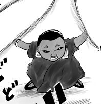 ![]() 風使い。 力のある武士と闘い勝った際にはその顔をはぎ生きたままコレクションとしている。 風のごとく、気まぐれ、マイペース、風の向くまま。 3話でも、黒無垢の女やおこげとは離れて単独行動をしている。 第1部、風編の象徴的なキャラクターの一人。 黒無垢の女と行動を共にする二人は食べ物にちなんだ黒いものをネーミングにしようと考え、いろいろ思案した末に「おはぎ」と「おこげ」とした。 なんとなく語呂も良いし。 |